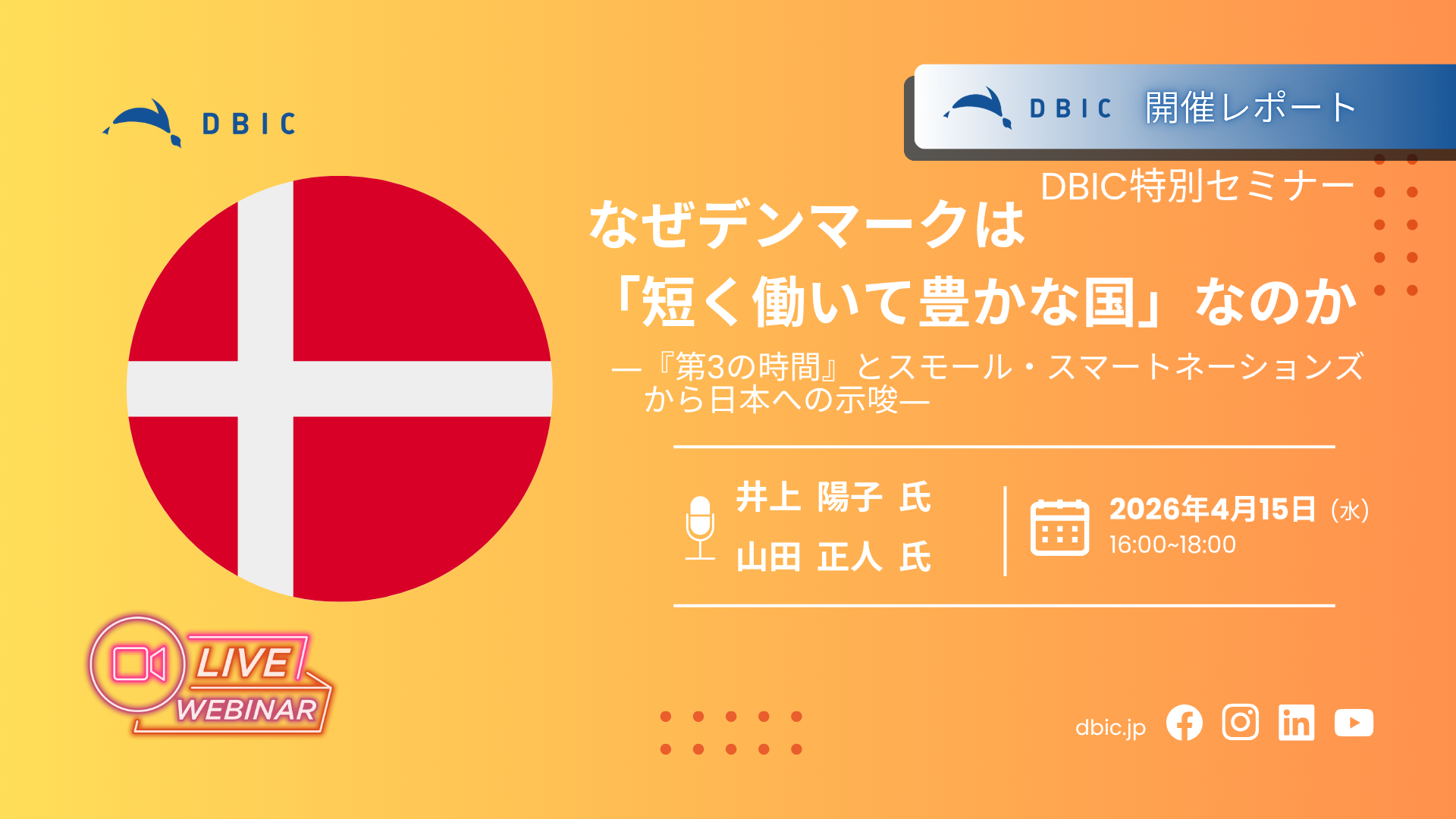 【レポート】DBIC特別セミナー なぜデンマークは「短く働いて豊かな国」なのかーー『第3の時間』とスモール・スマート・ネーションズから日本への示唆