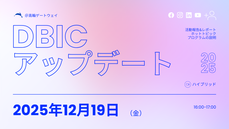 このDBIC UPDATEの機会を通じ、ご参加いただいた皆様には各イベントやプログラム等のご活用・ご参加をぜひご検討いただければ幸いです。またご活用・ご参加にあたっては、ディレクターにて個別のご相談にも対応いたしますため、お気軽にご連絡ください。